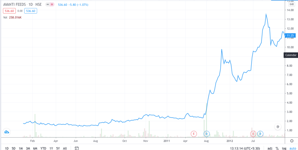 Lets think its around October 2012. One of our friends has told us about a company named Avanti Feeds Ltd.