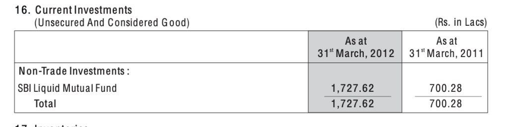 2) Another point of Significance in the Balance Sheet is too much money tied up in Investments. Let us investigate: