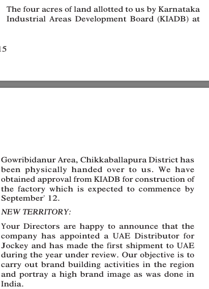 The company is in the business of manufacturing inner wear. It has an exclusive license to produce and market inner-wear under the international Jockey brand for India, Sri Lanka, Nepal, Bangladesh and Maldives.