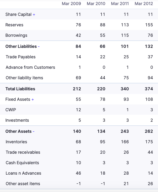 Lets now have a look at the balance sheet to see how it looks? How much proportion is tied in fixed and working capital ? How it has changed?