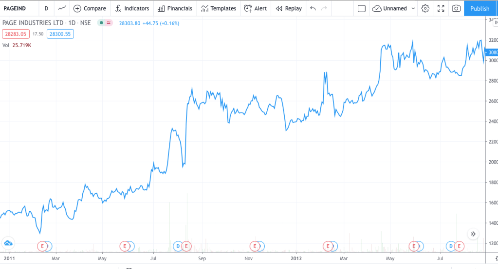 Screening: Let us assume that it is around 25th July 2012 and you come to know about a company named Page Industries Ltd which is growing fast, So you think of investigating it.