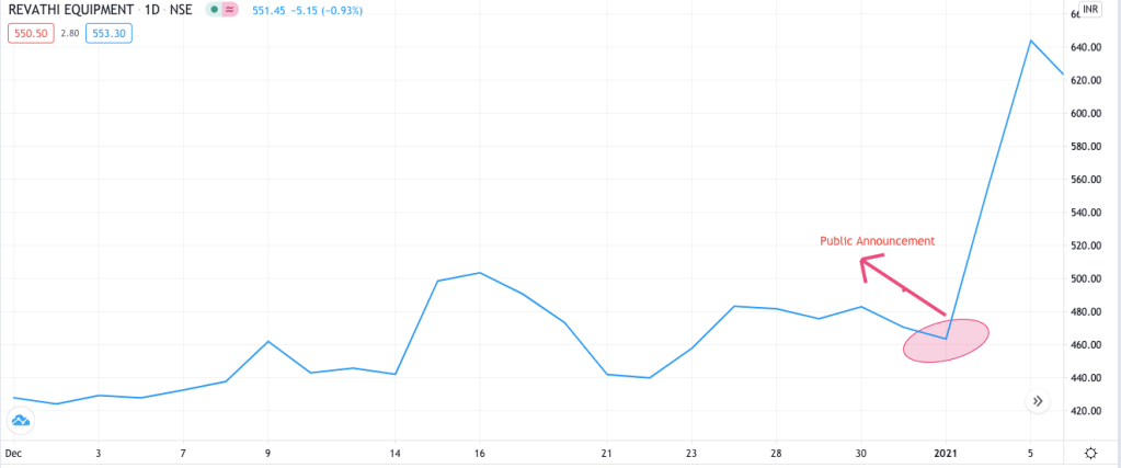 Share Price Reaction: Between 4 January and 7 January the stock price has reacted around 28 percent ( from 460 to 590 making a high of 640).