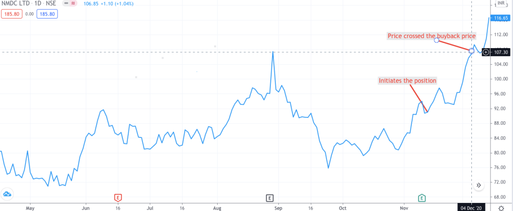 At the current price, It means that all the share get accepted in the tendering process which we know rarely happens. Today, we square our position and book 15 percent capital gain in the mere 20-22 days period.