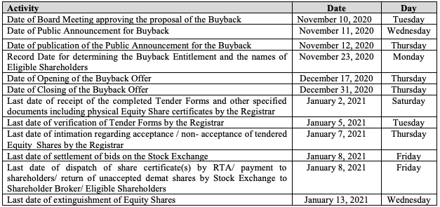 On 14 December 2020, the whole timeline till the date of extinguishment of equity shares have been intimated by company through letter of offer.