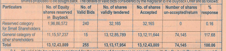 On 9 January 2021, through post buyback public announcement , we come to know about the tendering status , under the small shareholder nobody tenders and under general shareholder category only promoters tender.