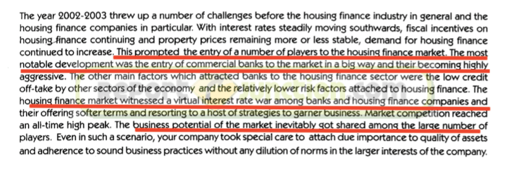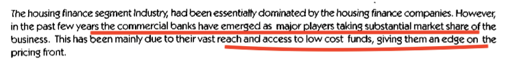 5) Threat of Regulation – Regulation plays a big role in growth or slowdown of the industry as a whole, as the NHB (regulator) is among the main financiers of NBFC’s.