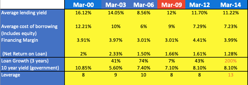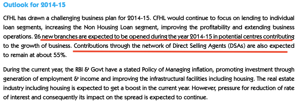 Additionally, the fall in financing margin from 2009 to 2014, seems to point out at operating leverage, as the Loan Book has grown from around 1800 crores to 5700 crores. There are some changes going on in the company since 2012. There has been a change in the management of the company. It is further corroborated by the visible change in numbers.