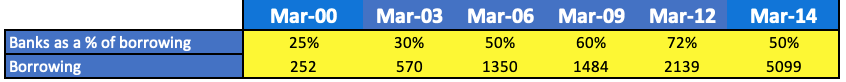 1) Borrowings – Over time the company has become more dependents on bank as a source of lending. Though from last 2-3 years there seems to be some changes in the same.