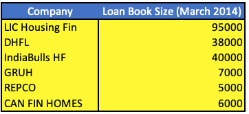 The housing finance industry in India contains of lot of players. We can categorise them on the basis of size as follows: