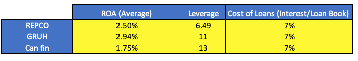 The effect of operating leverage can be seen in Low ROA of Can Fin mainly due to high expenses per branch (Till 2012 Below 45 Lakhs) as the company is in an expansion phase since 2012.
