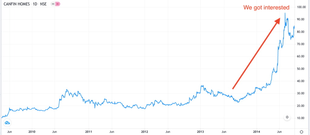 Screening: Lets assume that today is 30th July, 2014 and we come to know about a company named can fin homes. The fast increase in share price surprises us.