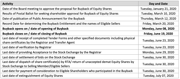 On 1st June 2020, the whole timeline till the date of extinguishment of equity shares have been intimated by company through letter of offer.