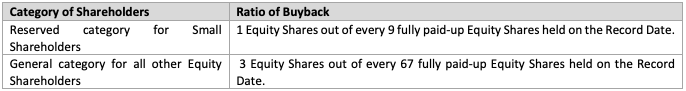 Today, through post buyback public announcement , we come to know about the tendering status. Under Small Shareholder 0.55% have tendered their shares and Under General shareholder 3.41% have tendered. It means those who tendered their all share have got accepted at 200 per share.
